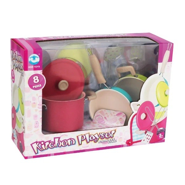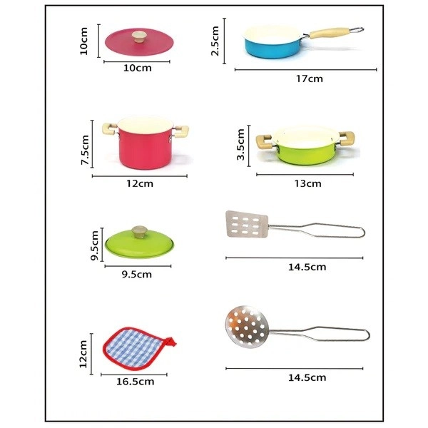 Realistická kovová sada hrnců pro děti ze nerezové oceli přináší zábavu jako v opravdové kuchyni. Obsahuje 8 prvků včetně hrnců, pánve a doplňků. Podporuje kreativitu, rozvoj jemné motoriky a bezpečné hraní rolí v dětské kuchyňce.