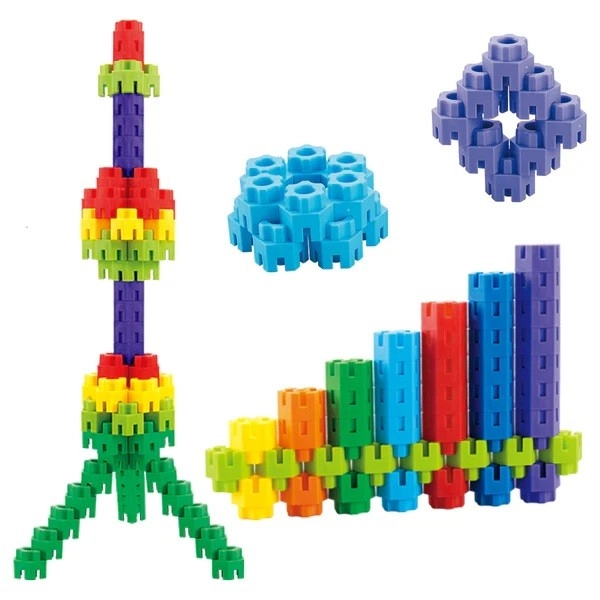 Objevte zábavnou a vzdělávací stavebnici se 65 dílky v 8 zářivých barvách, která rozvíjí jemnou motoriku, logické myšlení a kreativitu. Jednoduchý systém nasazování a propojování dílků umožňuje dětem snadno stavět nejrůznější 3D konstrukce – od robota po hradní věž – a přitom se skvěle bavit v bezpečí díky odolným, netoxickým materiálům.