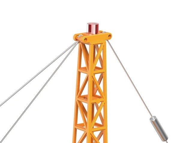 Realistická manipulace s nákladem díky otočné věži, kladce a háku – děti mohou zvedat a přesouvat drobné předměty jako na skutečné stavbě.