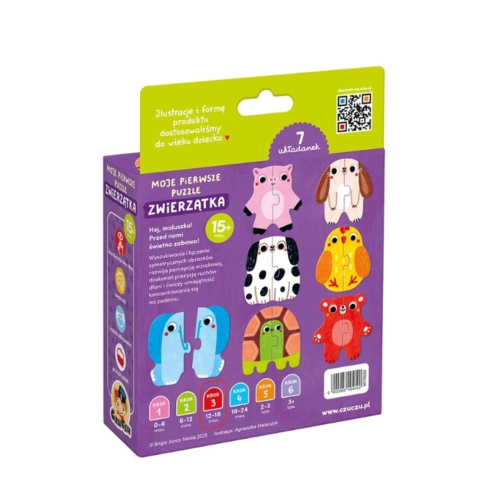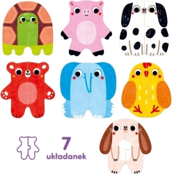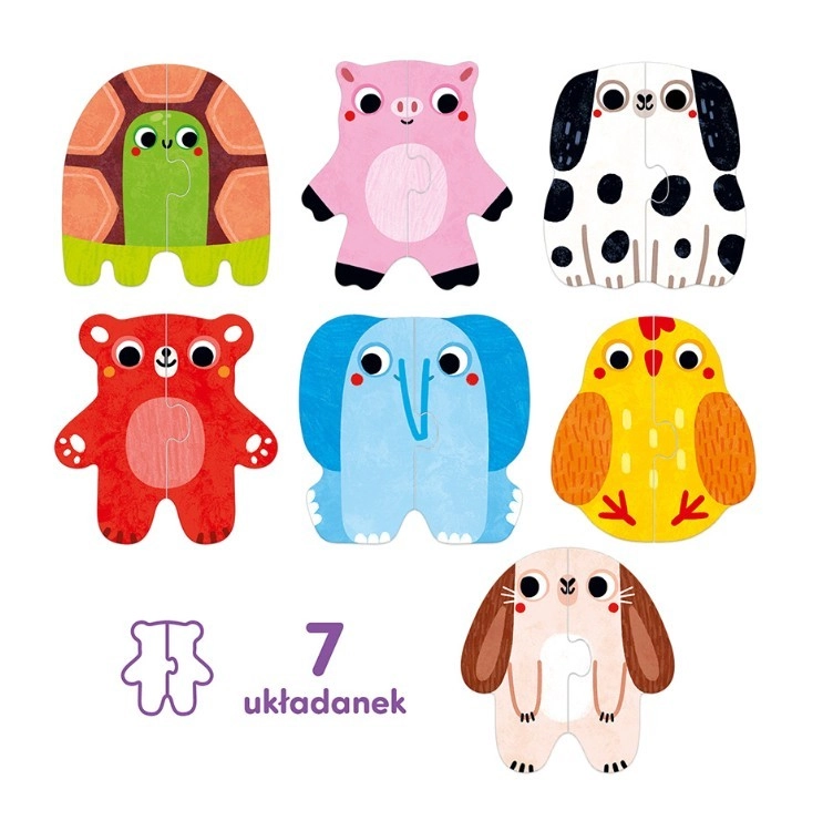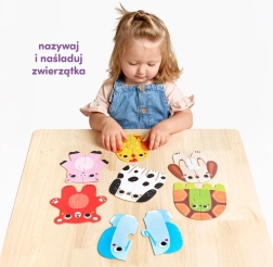 Roztomilé zvířátkové puzzle pro nejmenší pomáhají dětem skládat první dvojdílné obrázky, rozvíjet jemnou motoriku, postřeh a slovní zásobu. Jednoduché párování symetrických polovin přináší radost z každého správného spojení a podporuje kreativitu i učení formou hry.