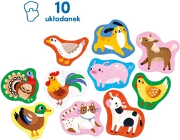 Veselá zvířátka z farmy zvou děti k hodinám tvořivé hry. Spojování dvojic dílků je ideální jako první krok do světa skládaček a pomáhá trénovat trpělivost i soustředění. Hra přirozeně rozvíjí jazyk – děti pojmenovávají zvířata, barvy i detaily na obrázcích a učí se je rozlišovat.
