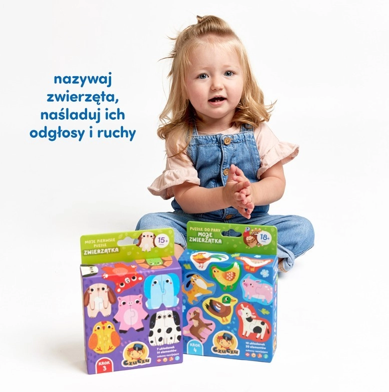 Objevte první puzzle pro nejmenší: dvoudílné “Puzzle do páru – moje zvířátka”. Děti si při hře rozvíjejí postřeh, jemnou motoriku a prostorovou představivost. Napodobování zvuků a pojmenovávání zvířátek podporuje řeč a rozšiřuje slovní zásobu – a navíc je to skvělá zábava!