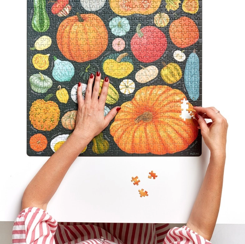 Ponořte se do zlaté podzimní nálady s puzzle Puzzlove Dýně. Desítky působivých dýní přímo z pole vytvářejí detailní, estetickou scénu, která potěší milovníky designu i skládání. 1000 dílků nabízí příjemnou míru náročnosti a odmění vás krásným obrazem, který můžete zarámovat a vystavit.