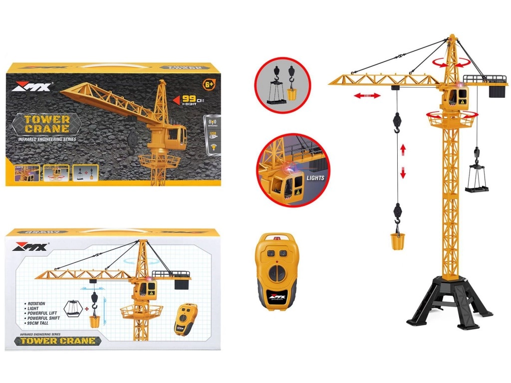 Tento realistický jeřáb na dálkové ovládání se stane středem každého dětského staveniště. Díky robustní plastové konstrukci a výšce 99 cm poskytuje autentický zážitek ze hry a pomáhá rozvíjet kreativitu, představivost a technické myšlení.