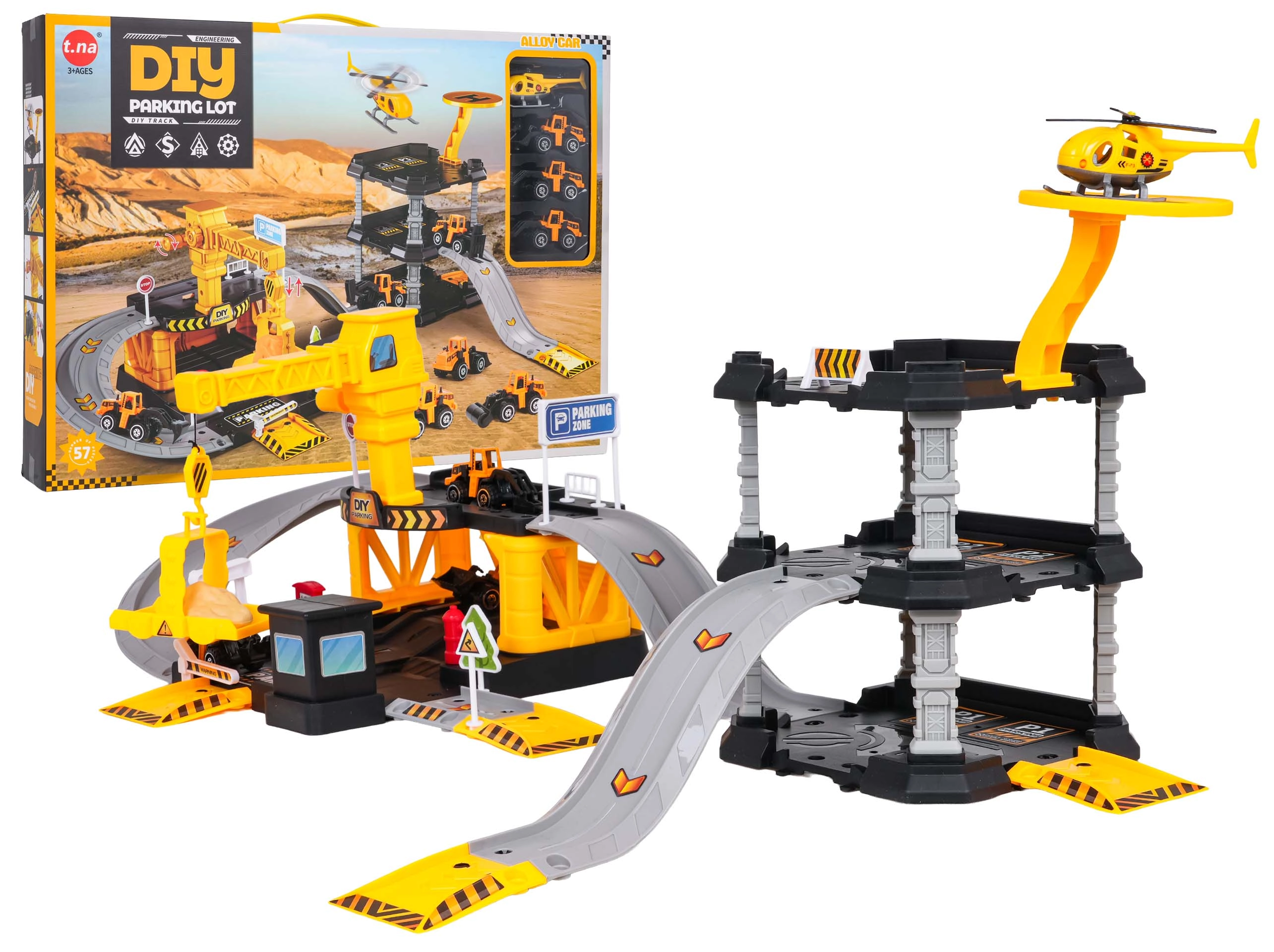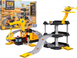 stavebnice parkoviště a staveniště s autíčky a helikoptérou