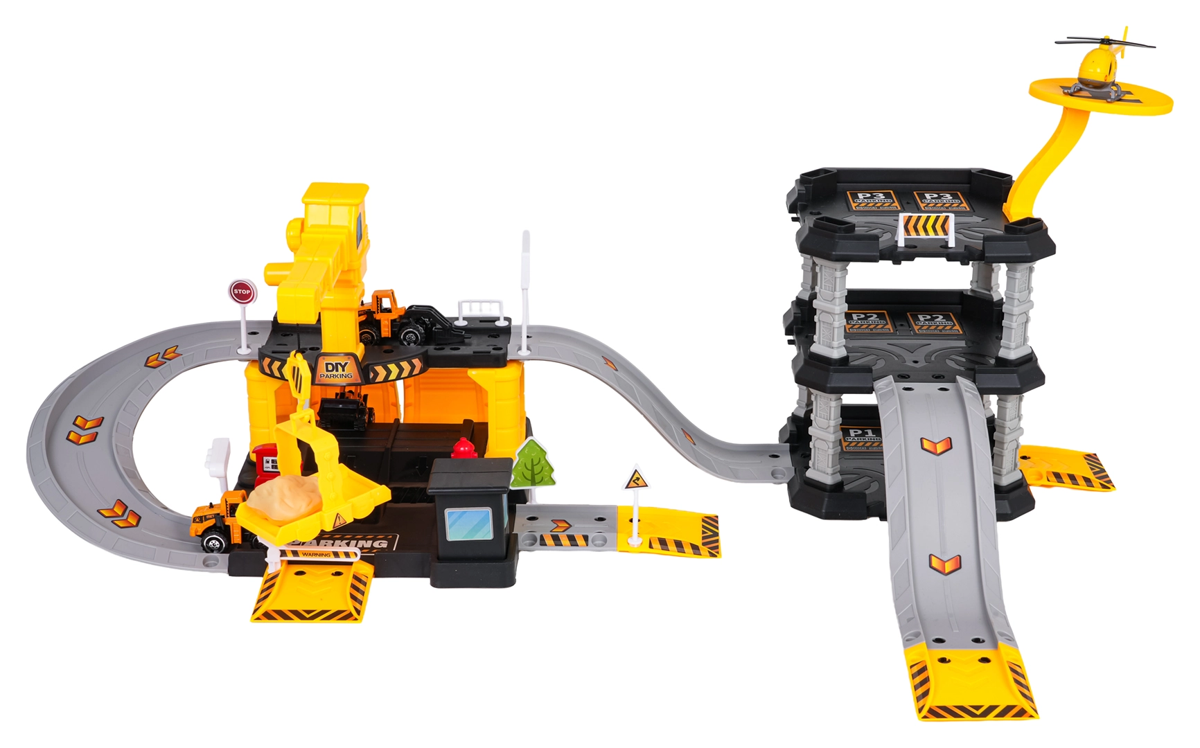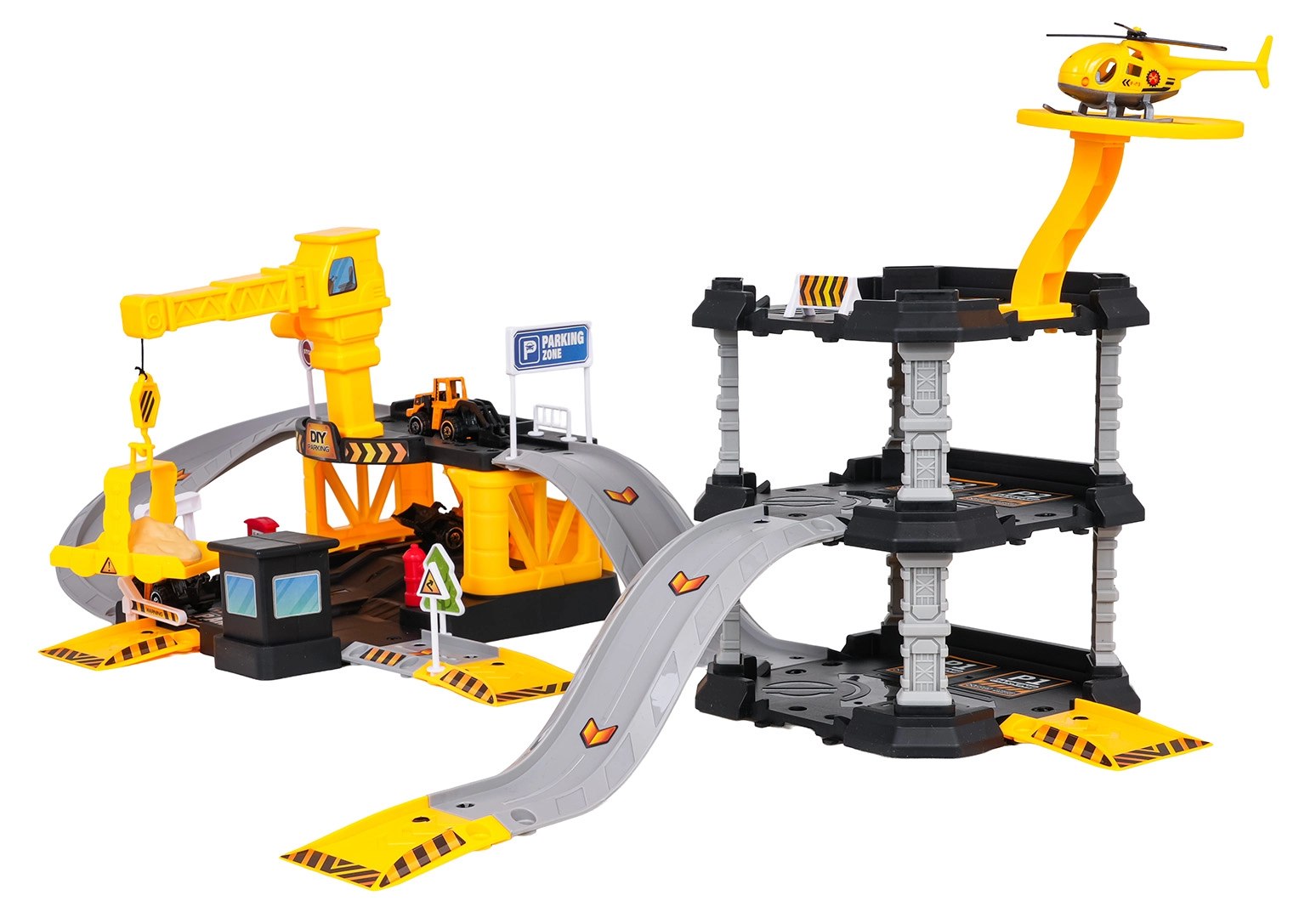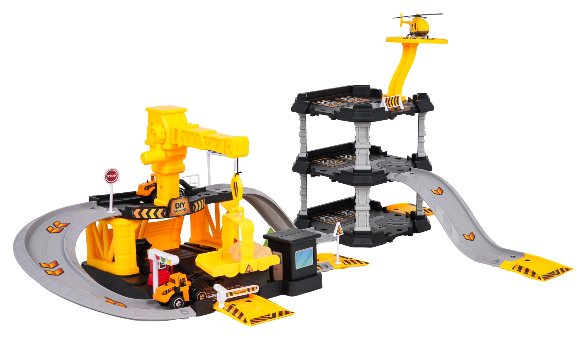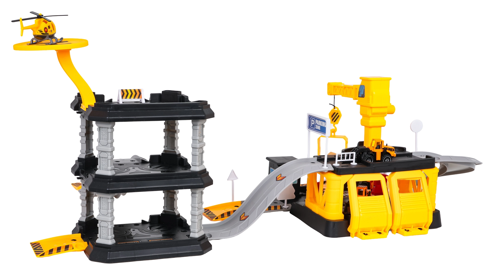 Tento propracovaný set přináší dětem svět stavby a dopravy v jednom. Z ramp staveniště se vozidla plynule přesouvají na tříúrovňové parkoviště, kde nechybí místa k parkování ani přistávací plocha pro helikoptéru. Stabilní díly se snadno skládají a drží pevně pohromadě, aby hraní bylo bezpečné a plynulé.