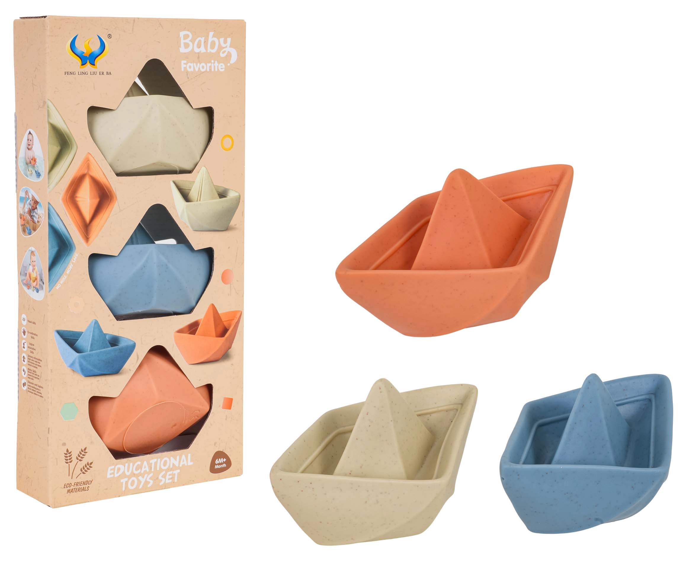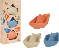 Tato sada tří roztomilých lodiček přináší dětem spoustu zábavy během koupání i her na suchu. Odolný, na dotek příjemný materiál bez škodlivin je šetrný k dětské pokožce a snadno se udržuje. Díky skladnému tvaru se lodičky dají jednoduše stohovat a uklidit.