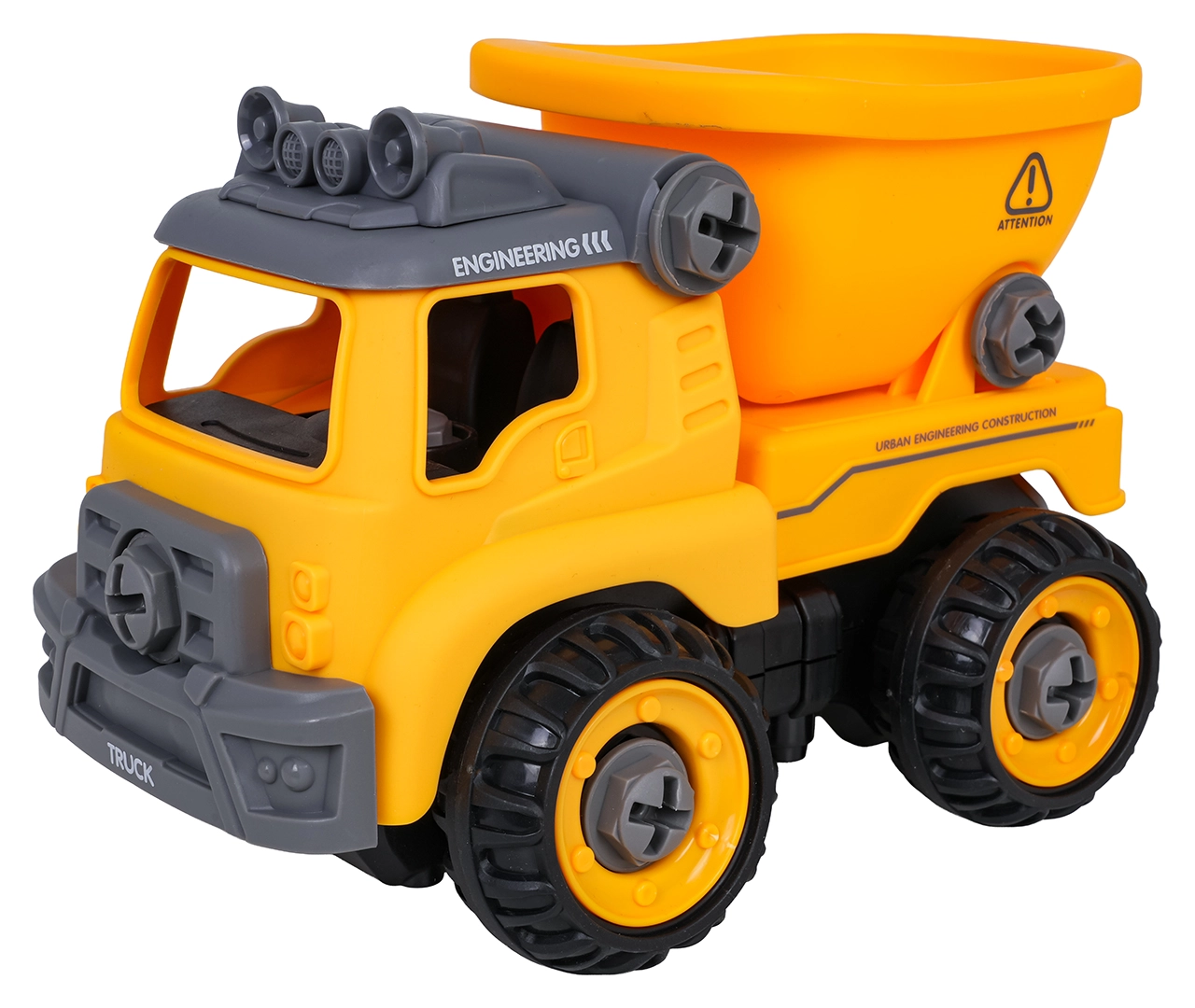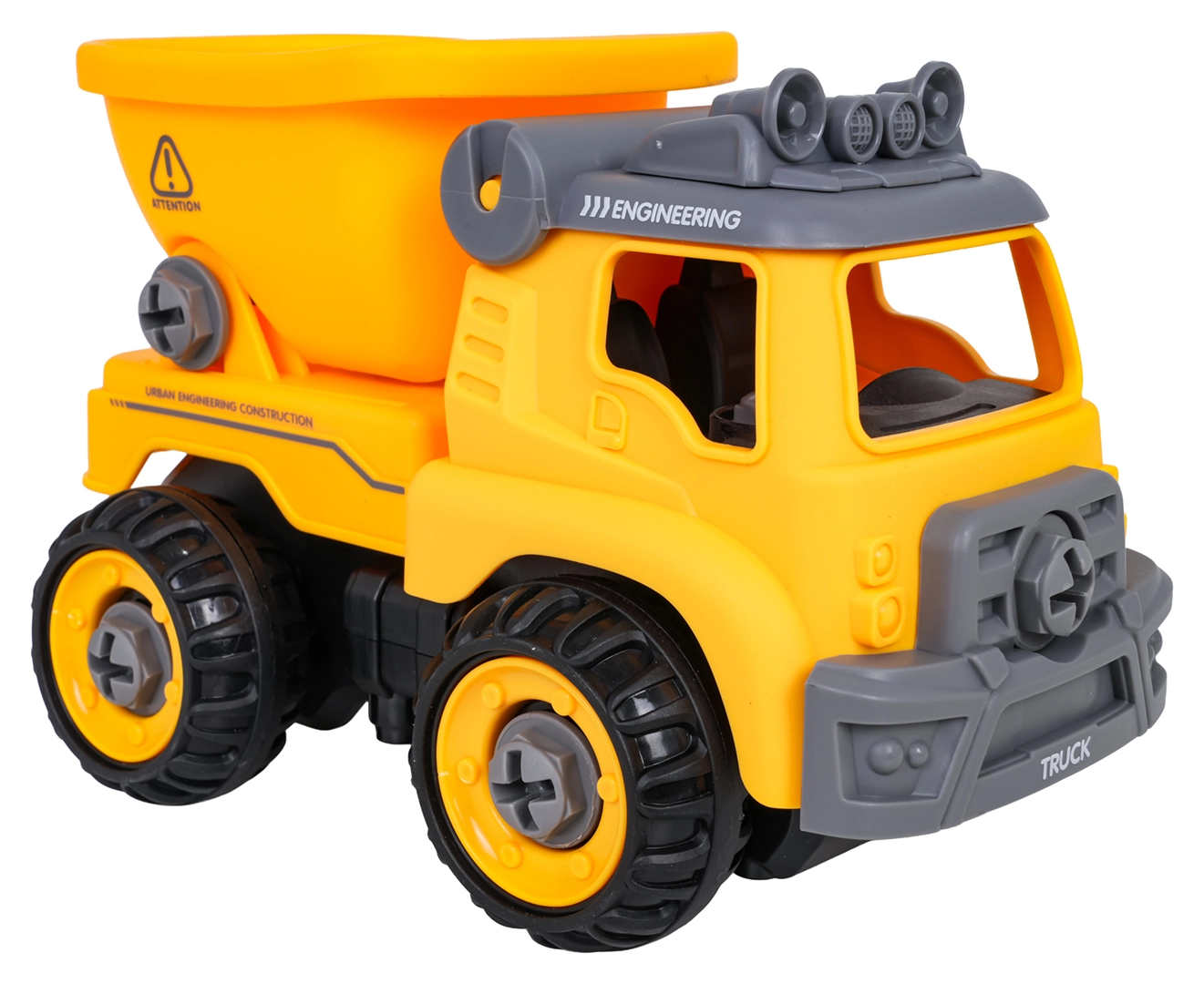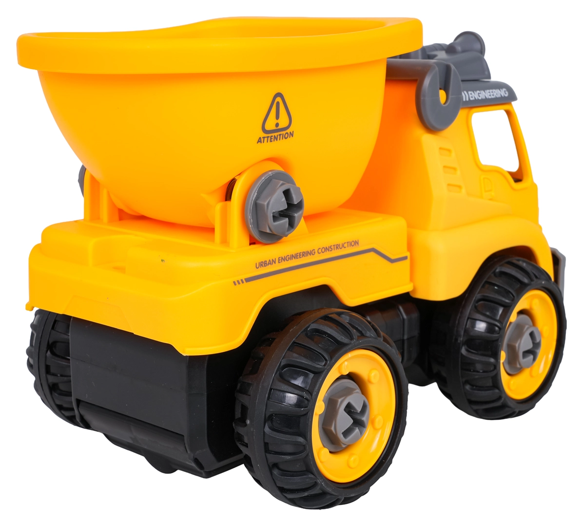 Stavební sklápěč je dodáván kompletně složený a připravený k jízdě. Pomocí přiložené bateriové vrtačky a ručního šroubováku jej mohou děti rozebrat na jednotlivé díly a opět sestavit. Vůz je vyroben z odolného plastu v živých barvách, takže zvládne každodenní hraní.