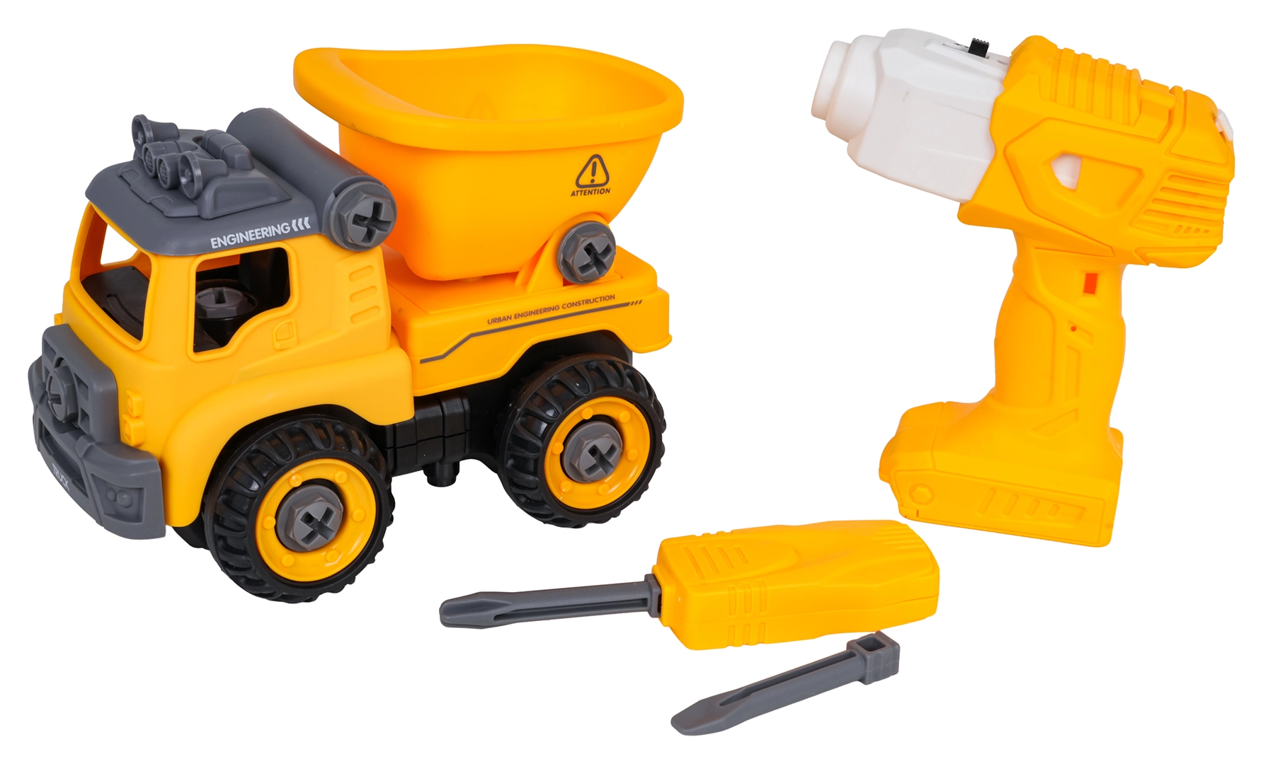 Zábavná rozebíratelná stavební tatrovka pro děti od 3 let s bateriovou vrtačkou a ručním šroubovákem. Děti mohou vůz snadno rozložit a znovu složit, procvičí si tak jemnou motoriku, logické myšlení i kreativitu. Po vložení řídicího panelu se auto samo pohybuje vpřed i vzad, nechybí sklápěcí korba a otevíratelná střecha.