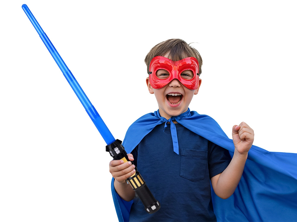 Staňte se hrdinou vlastní galaxie s tímto rozkládacím světelným mečem! Teleskopický modrý čepel, světelné a zvukové efekty a pohodlná rukojeť z něj dělají ideální doplněk pro dětské bitvy i kostýmy. Meč se rychle vysune švihem a jedním tlačítkem rozsvítí, takže zábava může začít během vteřiny.