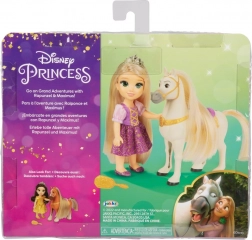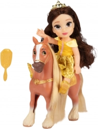 Tato kouzelná sada přenese děti do světa DISNEY pohádek. Panenka RAPUNZEL v fialových šatech nebo BELLE ve žlutých šatech je připravena na projížďku se svým koníkem. Díky přiloženému kartáči je možné česat a upravovat dlouhé vlasy panenky i hřívu koně.