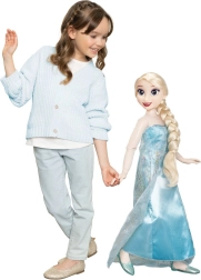 Objevte kouzlo Ledového království s nadrozměrnou panenkou Elsa o výšce 86 cm, která okouzlí detailně zpracovanými šaty s vločkami, dlouhým blonďatým copem a jemnými rysy. Díky plně kloubové konstrukci se skvěle pohybuje, snadno sedí, pózuje a doprovodí děti při každém dobrodružství.
