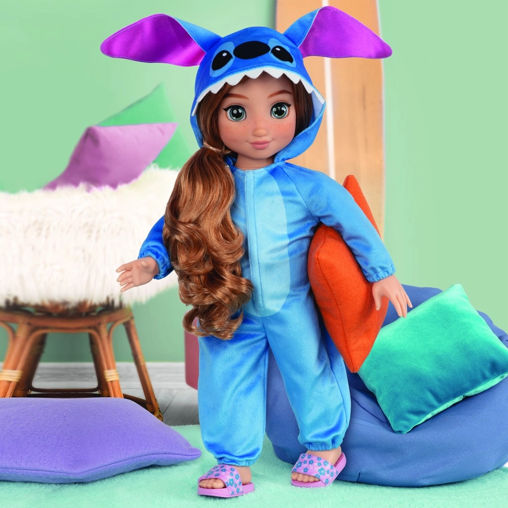 Roztomilá panenka inspirovaná postavičkou Stitch z Disney, vysoká cca 45 cm, s dlouhými česacími vlasy a pohyblivými končetinami. Stylový modrý overal se zipem a kapucí s oušky podporuje kreativní hru, přestrojování a pózování. Skvělá kamarádka na mazlení, styling i každodenní dobrodružství.