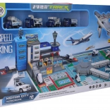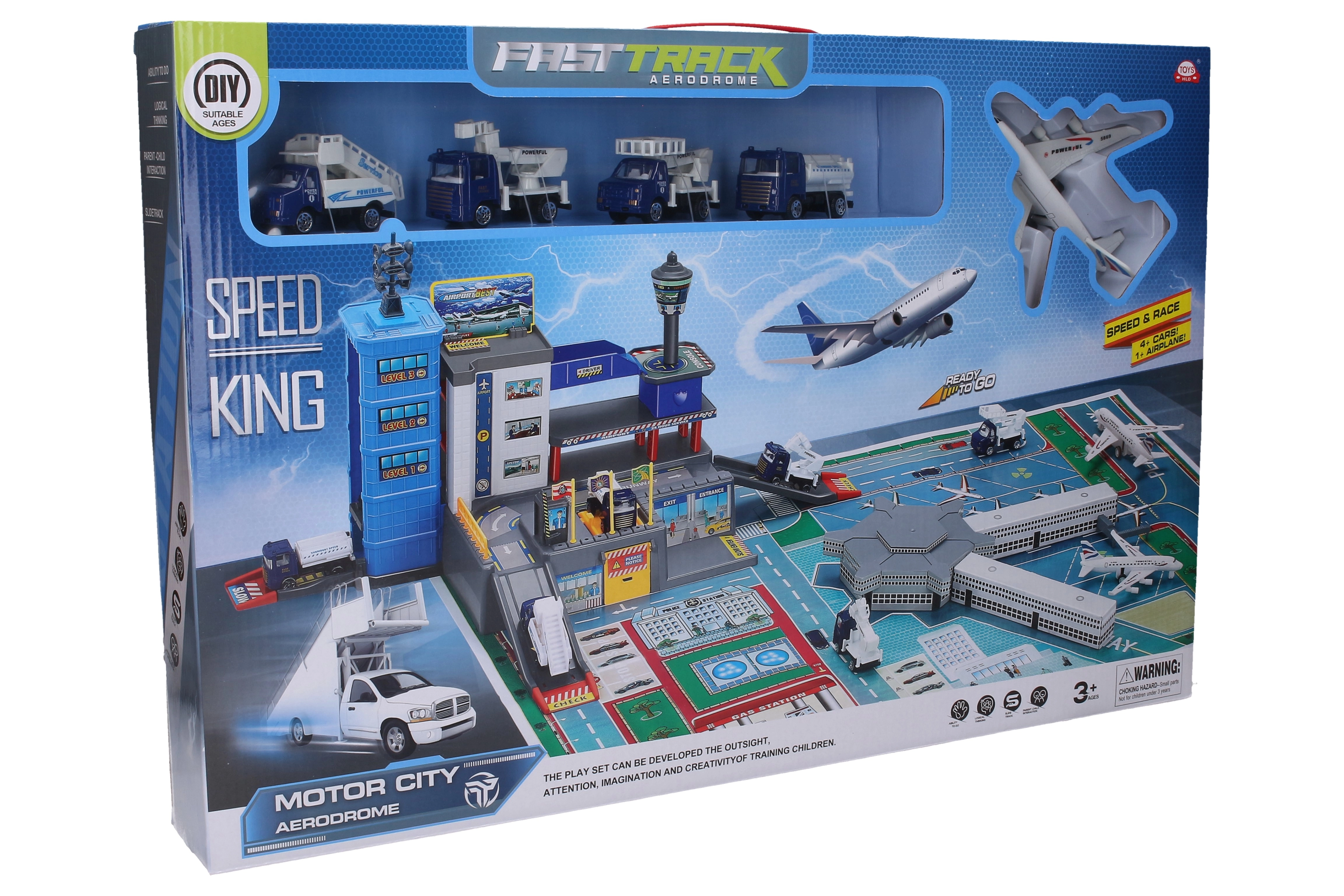 - Kompletní set – letištní garáž/plocha, 4 kovová autíčka, 1 kovové letadlo
