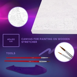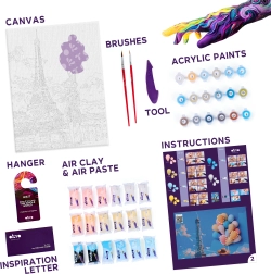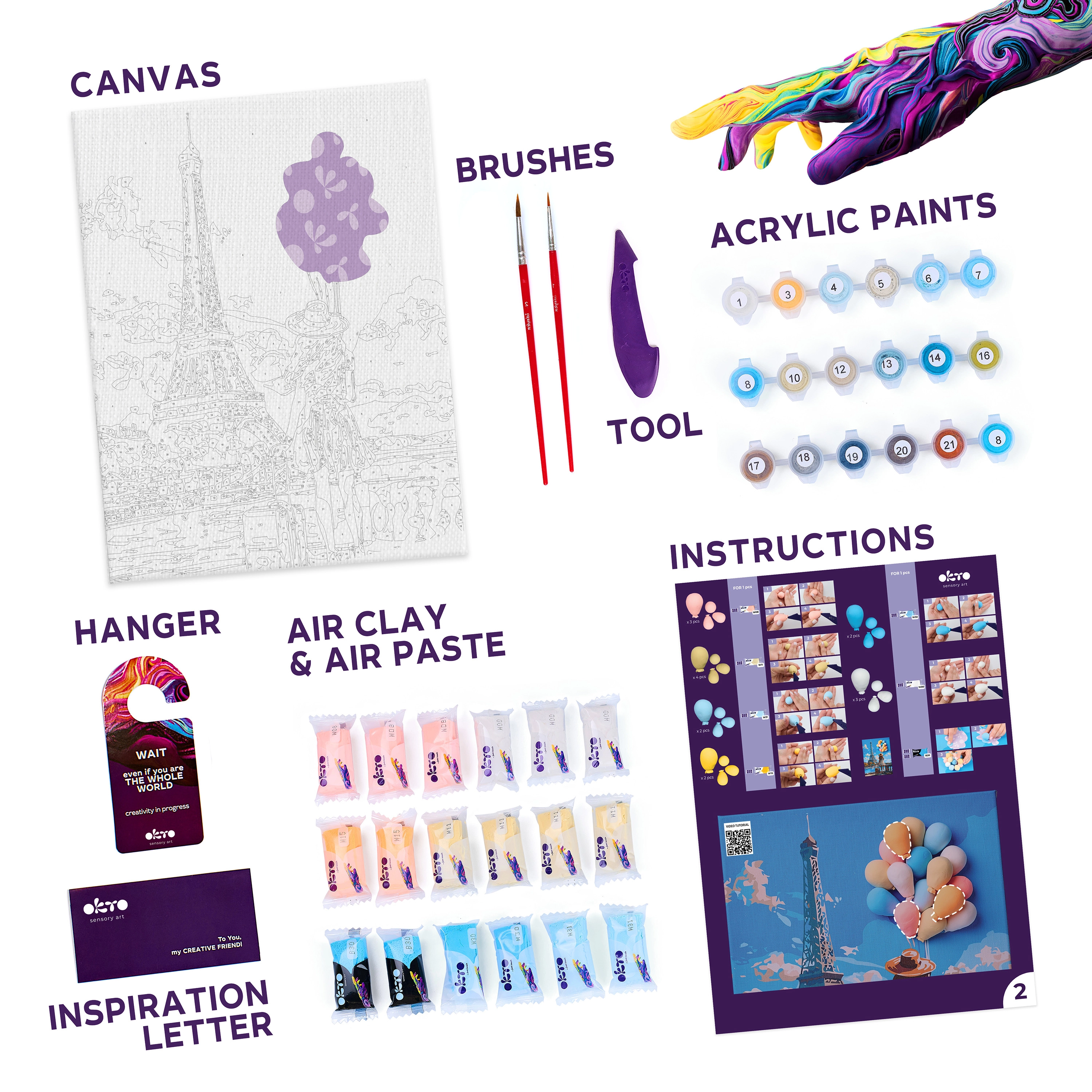 - Kompletní sada: plátno, návod, modelovací nástroj, samoschnoucí hmota, barvy, štětec