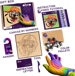 Objevte kreativní zábavu pro děti i dospělé s sadou malování hmotou podle čísel s roztomilým motivem buldočka. Hotový obrázek o velikosti 29 × 29 cm potěší jako dekorace i originální dárek. V balení najdete vše potřebné – rám, plátno, obrázkový návod, modelovací nástroj a 14 ks barevných tvarovacích směsí.