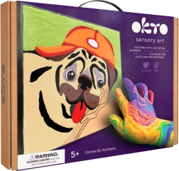 Tato kreativní sada OKTO je ideální pro všechny, kdo milují tvoření a chtějí si vyrobit vlastní dekoraci bez složitého malování štětci. Postup podle čísel je jednoduchý a relaxační – stačí nanášet barevnou modelovací směs na vyznačená pole a sledovat, jak vzniká živý portrét buldočka.