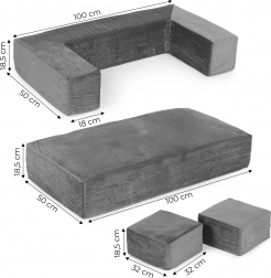 Modulární pohovka ECOTOYS je skvělým řešením pro dětské pokoje a herny. Čtyři pěnové díly s příjemným textilním potahem lze skládat do klasické sedačky, lenošky nebo uzavřeného herního koutku. Lehká konstrukce podporuje samostatnost a kreativitu – děti si mohou nábytek snadno přeskládat podle nálady.