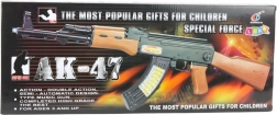 Realistický dětský samopal AK‑47 přináší akční zábavu se světelnými a zvukovými efekty. V černo‑hnědém provedení s imitací dřeva vypadá jako skutečný. Skvělý pro hraní rolí, rozvíjí představivost a nabízí spoustu napínavé zábavy doma i venku.