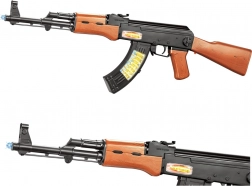 Hračka ve stylu AK‑47 je navržena pro malé fanoušky akčních her. Při stisknutí spouště se aktivují reálné zvuky výstřelů a barevné světelné efekty, které umocní atmosféru hry. Černo‑hnědá barevnost s imitací dřeva dodává zbrani realistický vzhled.