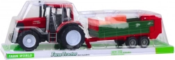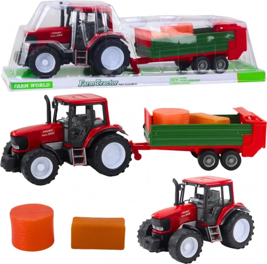 Objevte robustní farmářský set, který potěší malé milovníky venkova. Detailně zpracovaný červený traktor s velkými koly a odnímatelným zeleným přívěsem věrně napodobuje skutečné zemědělské stroje. Součástí jsou i balíky sena, které lze nakládat, převážet a vykládat.