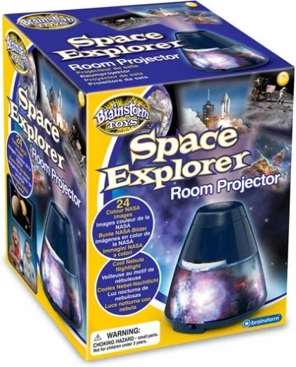 Objevujte vesmír přímo z domova s projektorem Brainstorm. Nabízí 24 barevných snímků kosmických lodí, astronautů, planet a mlhovin na 3 vyměnitelných slajdech s autentickými záběry z NASA a teleskopu Hubble. Snadné ovládání, projekce až do šířky 1 m na strop či stěnu a možnost přepnout do režimu noční lampičky s efektem mlhoviny.