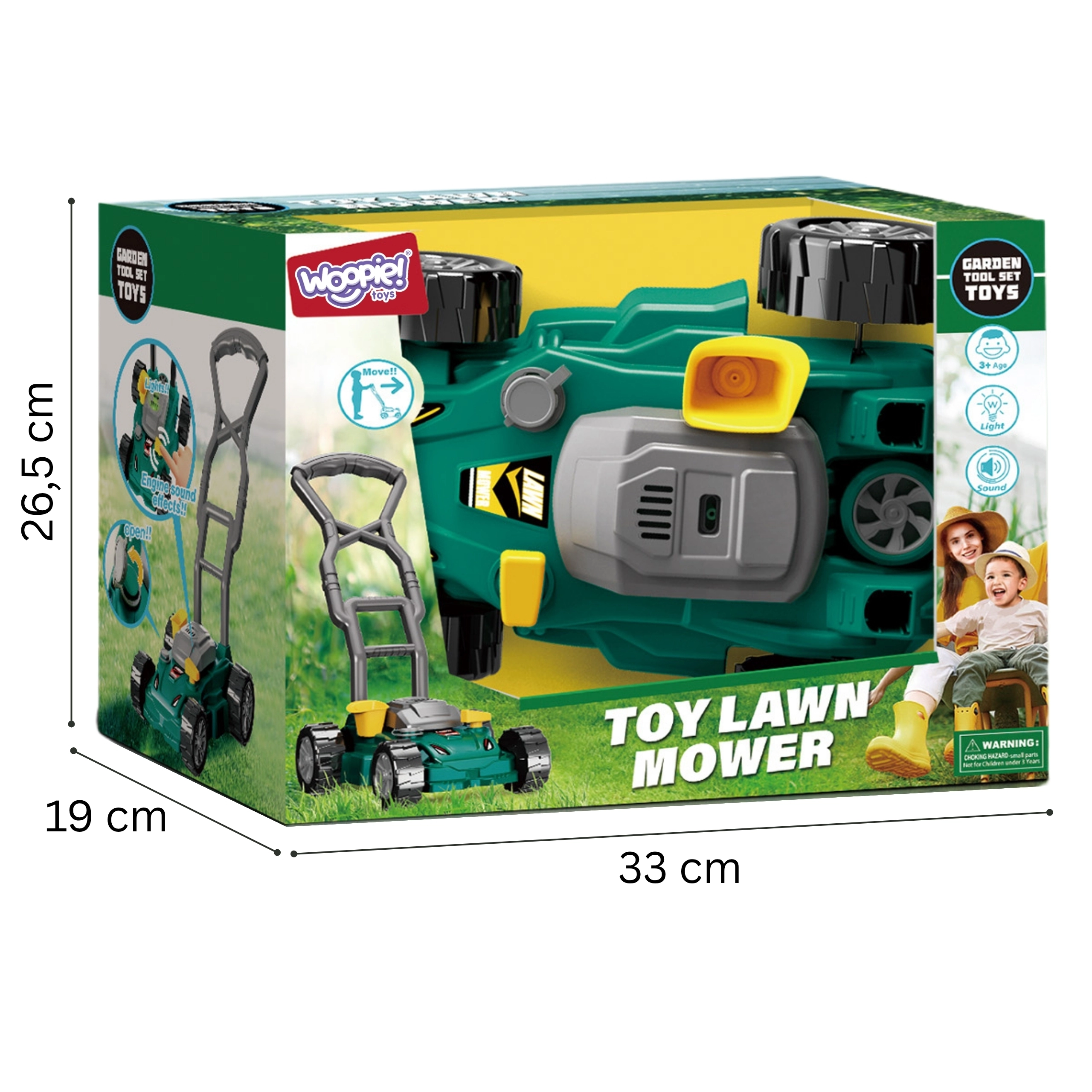 Připravte se na veselou hru na zahradníka s dětskou sekačkou WOOPIE. Tato realistická sekačka s světelnými a zvukovými efekty napodobuje skutečný stroj, podporuje kreativitu a rozvoj motoriky a děti si s ní užijí hodiny zábavy venku i doma.