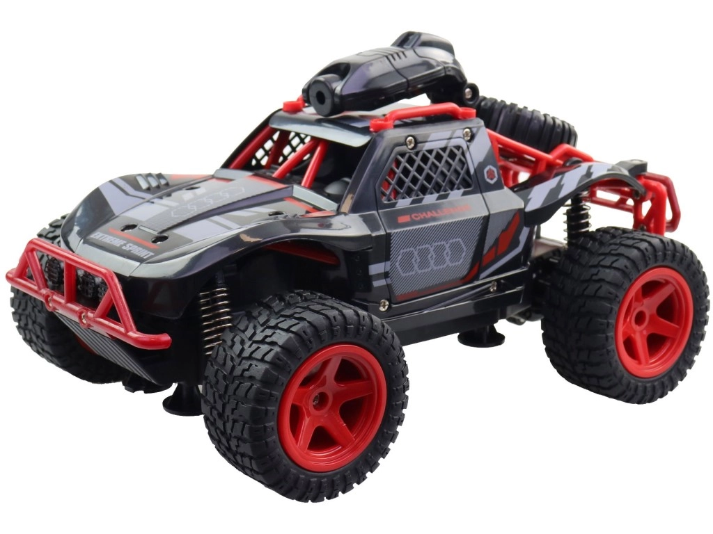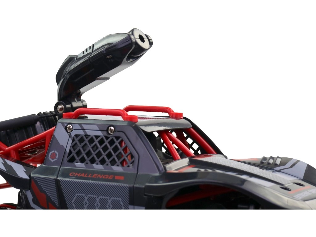 Toto off-road RC auto s HD kamerou vám přinese skutečný zážitek z jízdy díky přenosu obrazu přímo do smartphonu. Přes Wi‑Fi sledujete scénu živě v HD a pomocí aplikace nebo dálkového ovladače snadno řídíte směr i rychlost. Robustní šasi, pružinové tlumiče a velká kola s hlubokým vzorkem zajišťují jistotu na nerovném povrchu a skvělou trakci.