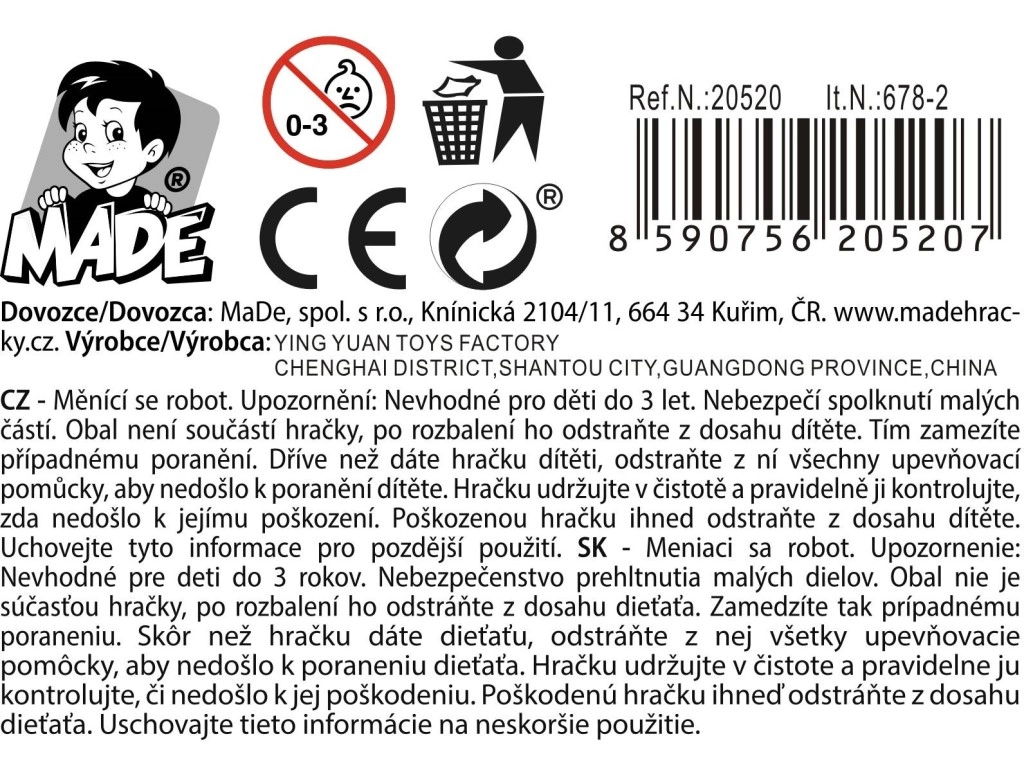 Tato robotická hračka je navržena pro bezpečné a zábavné hraní dětí od 3 let. Díky třem různým provedením si děti mohou vybrat robota podle svého stylu a rozvíjet fantazii i motorické dovednosti.