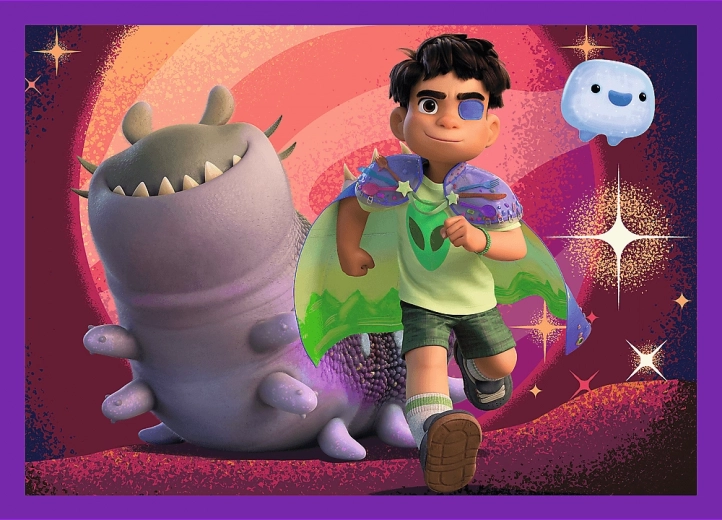 Zábavná sada čtyř puzzle s motivem ELIO přináší dětem vesmírné dobrodružství v jednom balení. Různý počet dílků (35, 48, 54 a 70) podporuje postupný rozvoj dovedností, trénuje trpělivost a logické myšlení a nabízí kvalitní zpracování od značky Trefl.
