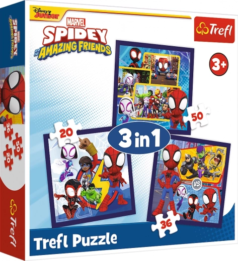 Dětské puzzle set 3v1 s motivy Spidey, pavouků a dinosaurů přináší tři obrázky o 20, 36 a 50 dílcích. Skvělé pro rozvoj logiky, trpělivosti a jemné motoriky. Každé složené puzzle má rozměr cca 20 × 19,5 cm.