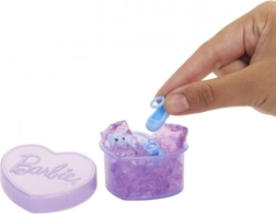 Balení inspirované dárkovou krabičkou skrývá panenku Chelsea, želé Slime s ukrytými doplňky, boty, náhrdelník a zvířecího kamaráda – připraveno k okamžitému rozbalování.