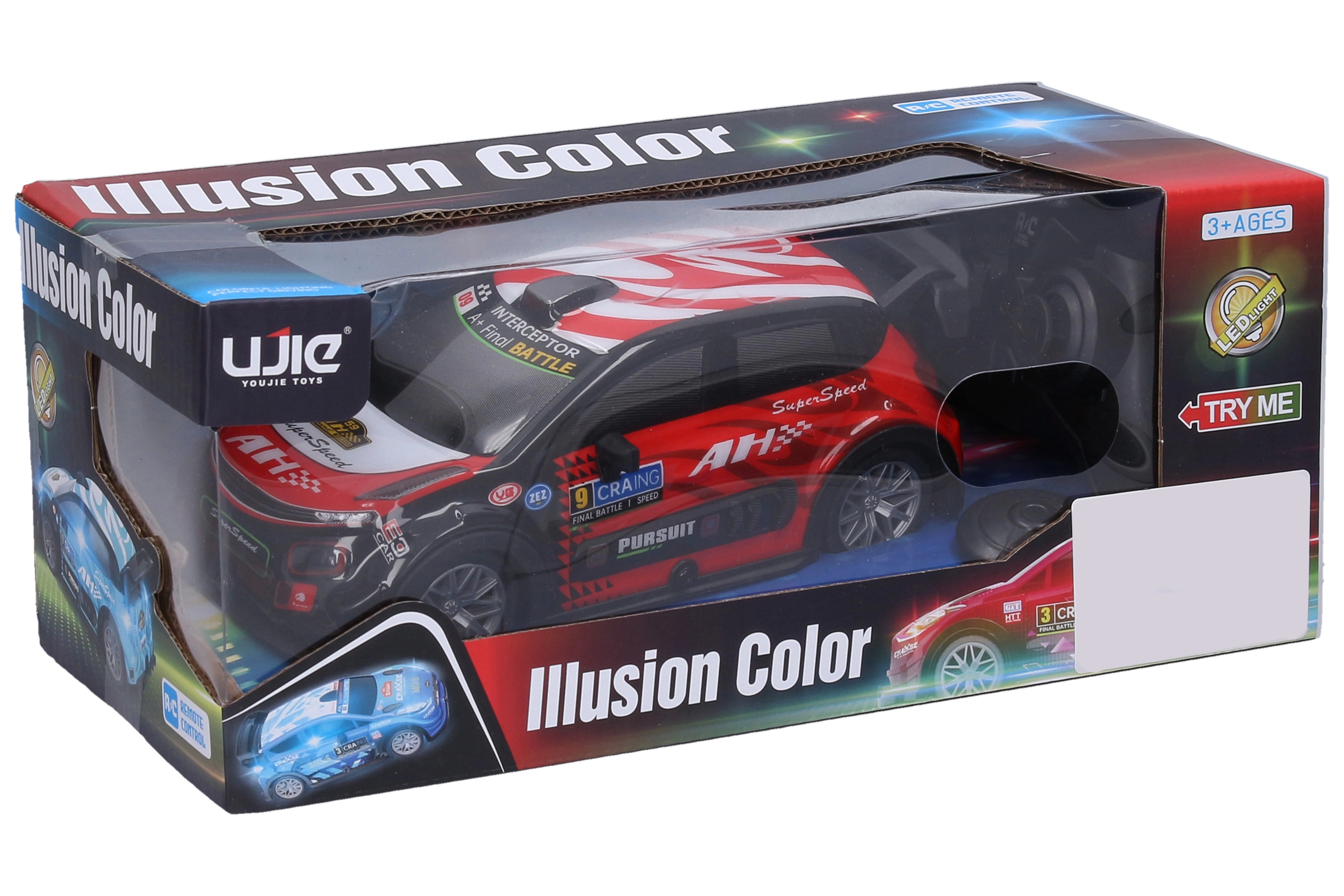 Užijte si akční jízdu s tímto svítícím RC autem, které vyniká atraktivními světelnými efekty a jednoduchým ovládáním. Díky dosahu až 20 metrů a rychlosti do 10 km/h je ideální pro domácí závody i menší venkovní plochy. Přehledný přepínač ON/OFF na spodní straně auta a snadná příprava k jízdě potěší začátečníky i pokročilé.