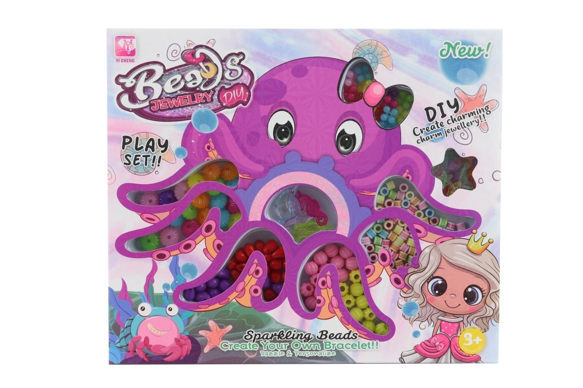 Objevte zábavu z navlékání s touto pestrou sadou plastových korálků uložených v roztomilé krabičce s chobotnicí. Sada podporuje kreativitu, jemnou motoriku a trpělivost dětí již od 3 let.