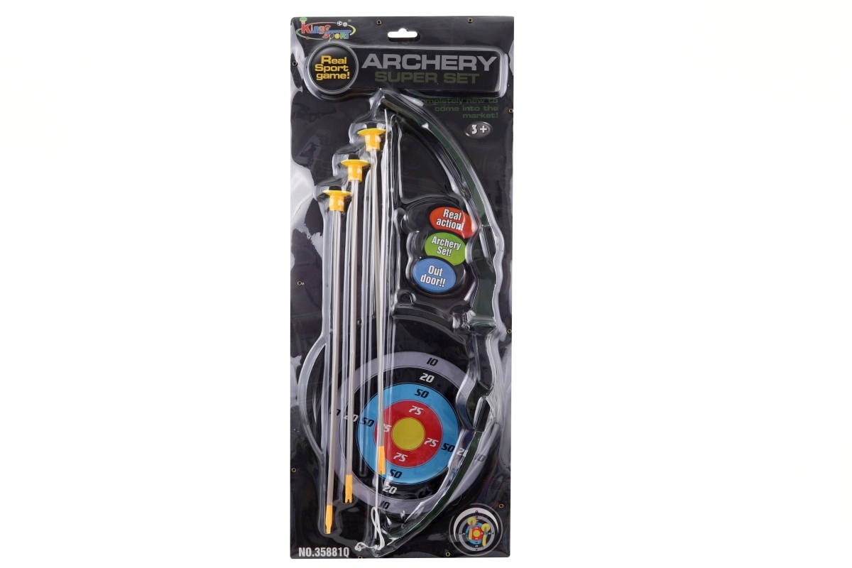 - Plastový luk, 3 šípy s přísavkou, závěsný terč