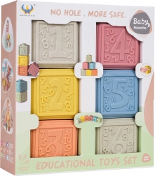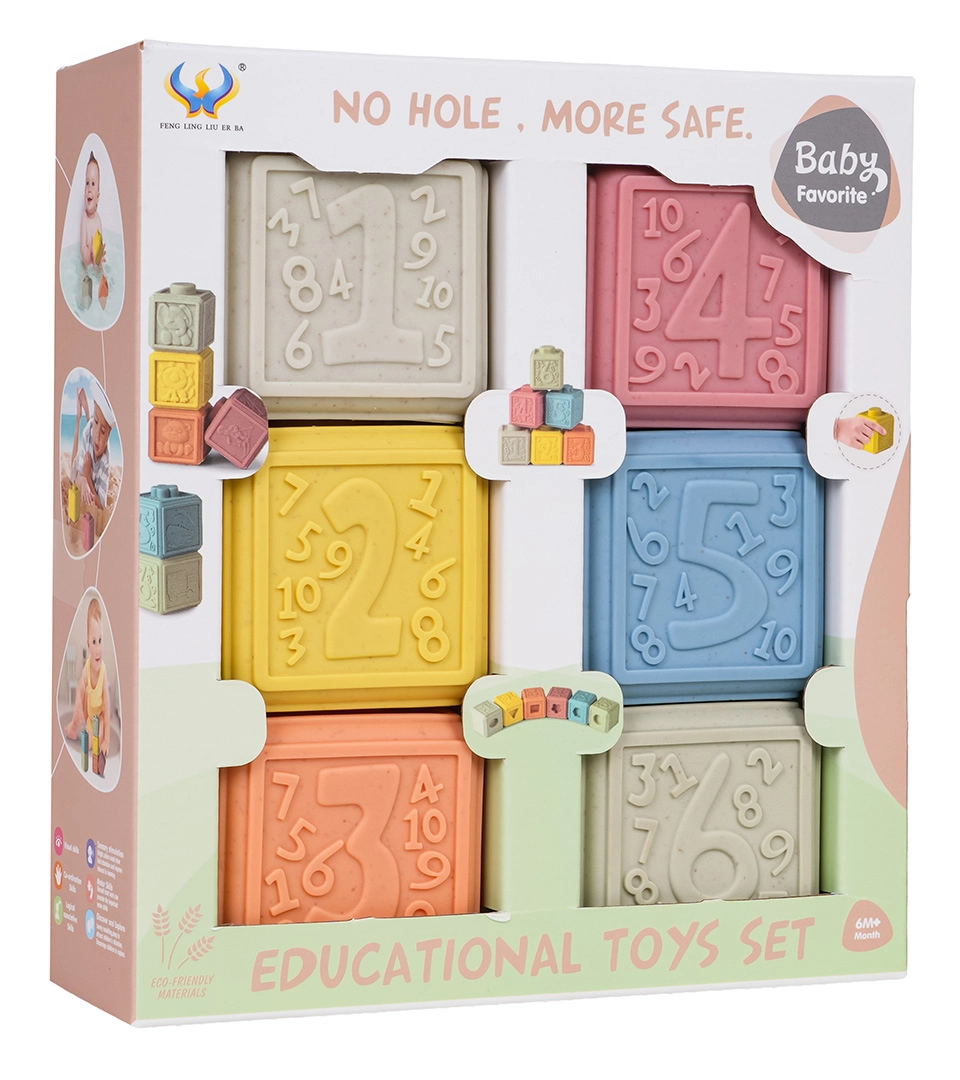 Děti mohou kostky stavět do věží, třídit podle barev, poznávat čísla a zkoumat reliéfní tvary. Hra přirozeně rozvíjí kreativitu a logické myšlení a zároveň učí trpělivosti a soustředění.