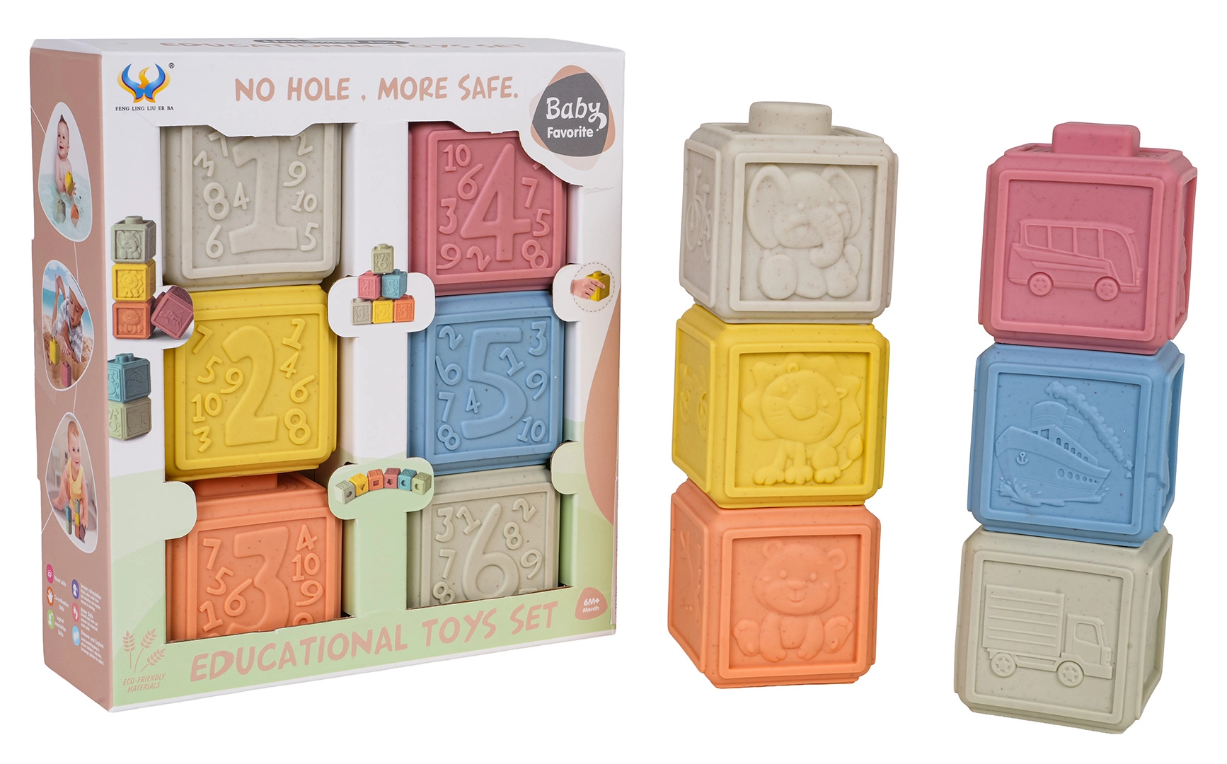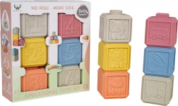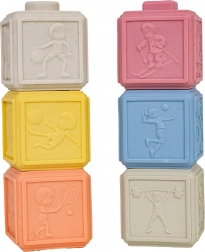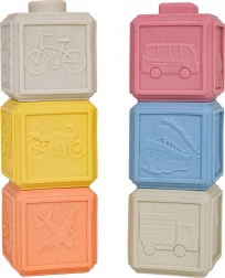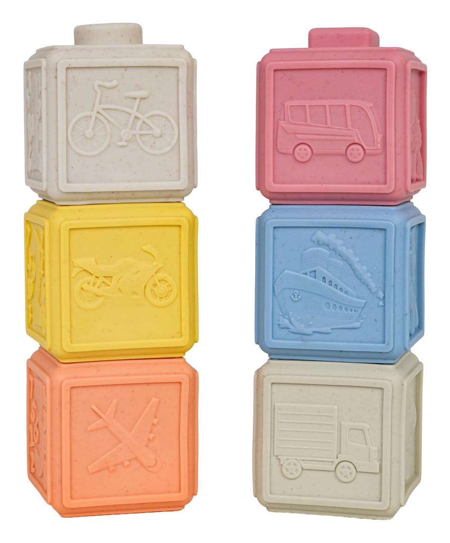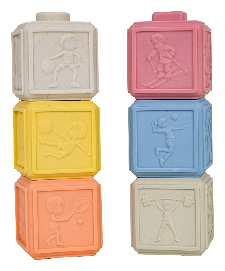 Ekologická sada 6 měkkých kostek v pastelových barvách přináší nekonečné možnosti hraní a učení. Každá kostka má jinou strukturu povrchu a motivy, které podporují jemnou motoriku, koordinaci ruka–oko a rozvoj smyslů. Díky bezpečnému, měkkému materiálu jsou ideální pro batolata a mohou sloužit také jako kousátko při prořezávání zoubků.