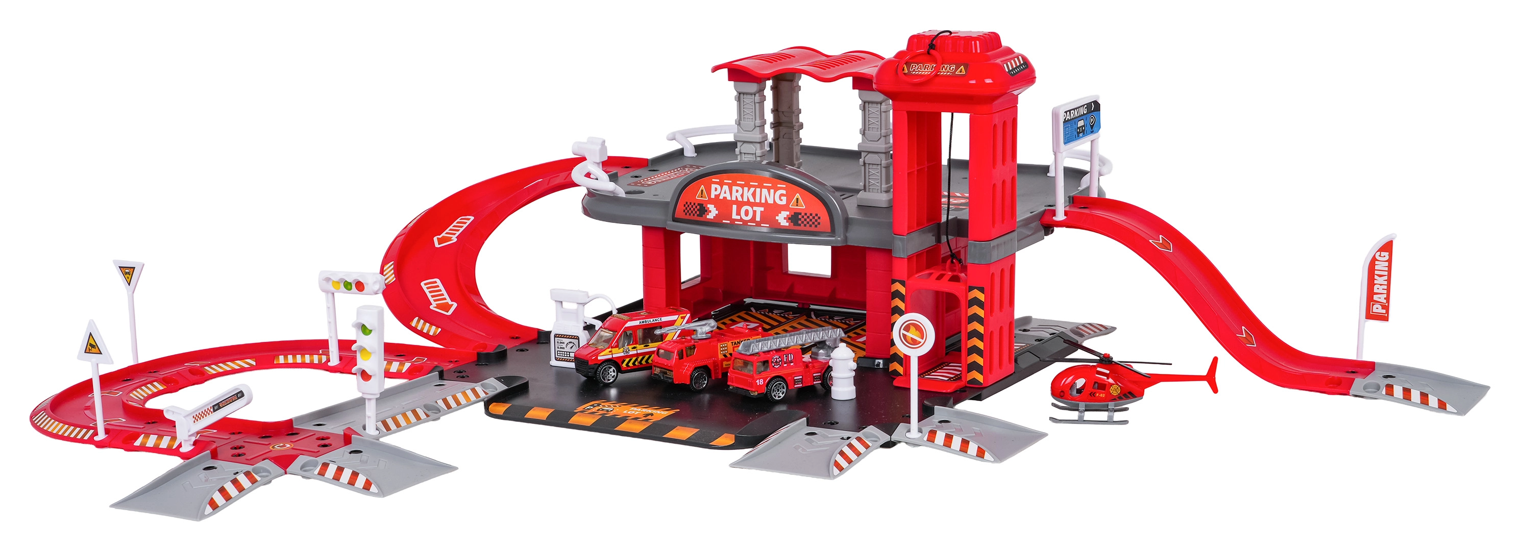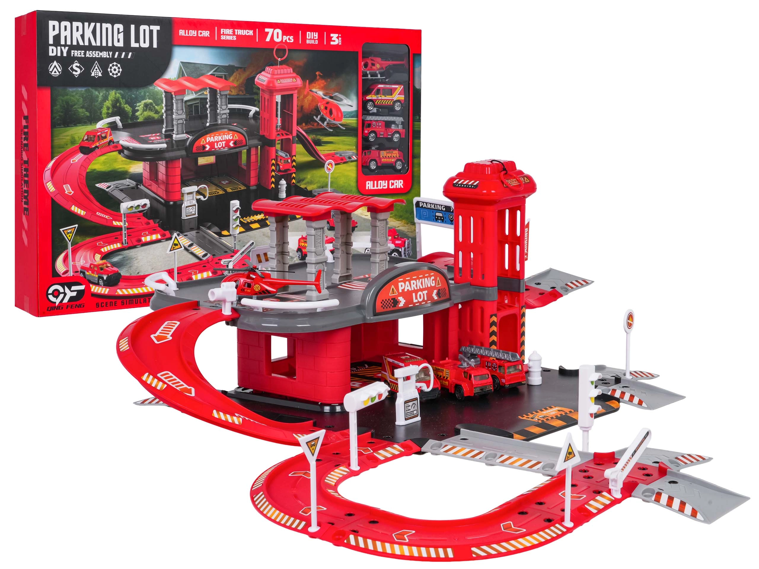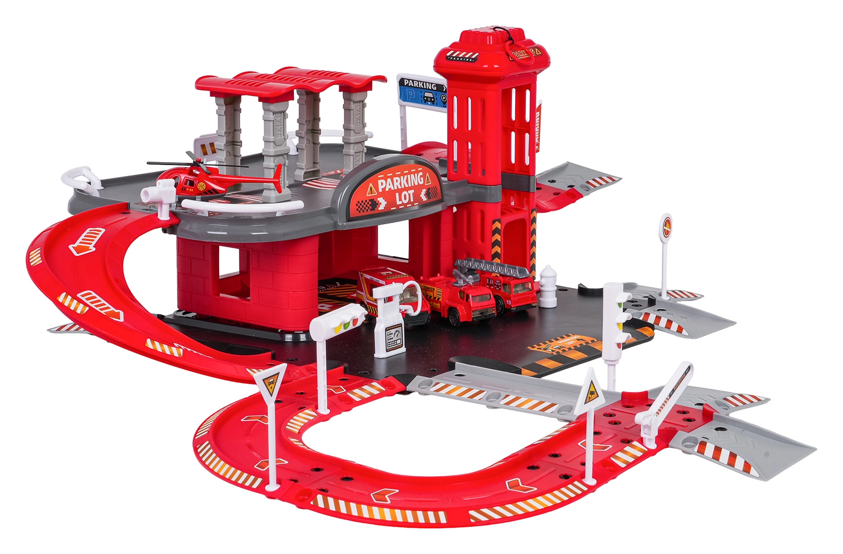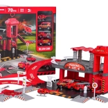 Tento detailně zpracovaný set hasičské stanice kombinuje zábavu a rozvoj dovedností. Děti mohou tankovat na benzínce, jezdit po silnici, vyvézt vůz manuálním výtahem do patra a parkovat v určených stáních. Z horního patra se vozidla vracejí výtahu nebo sviští dolů po závitové rampě.