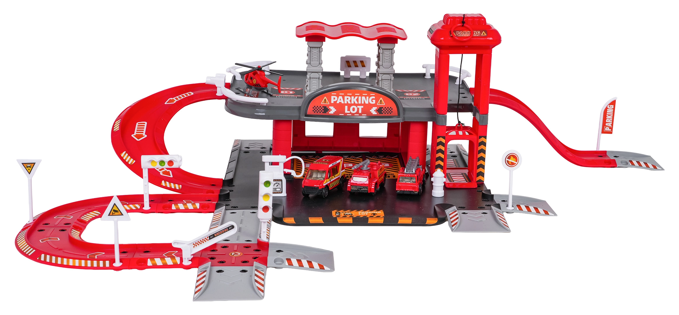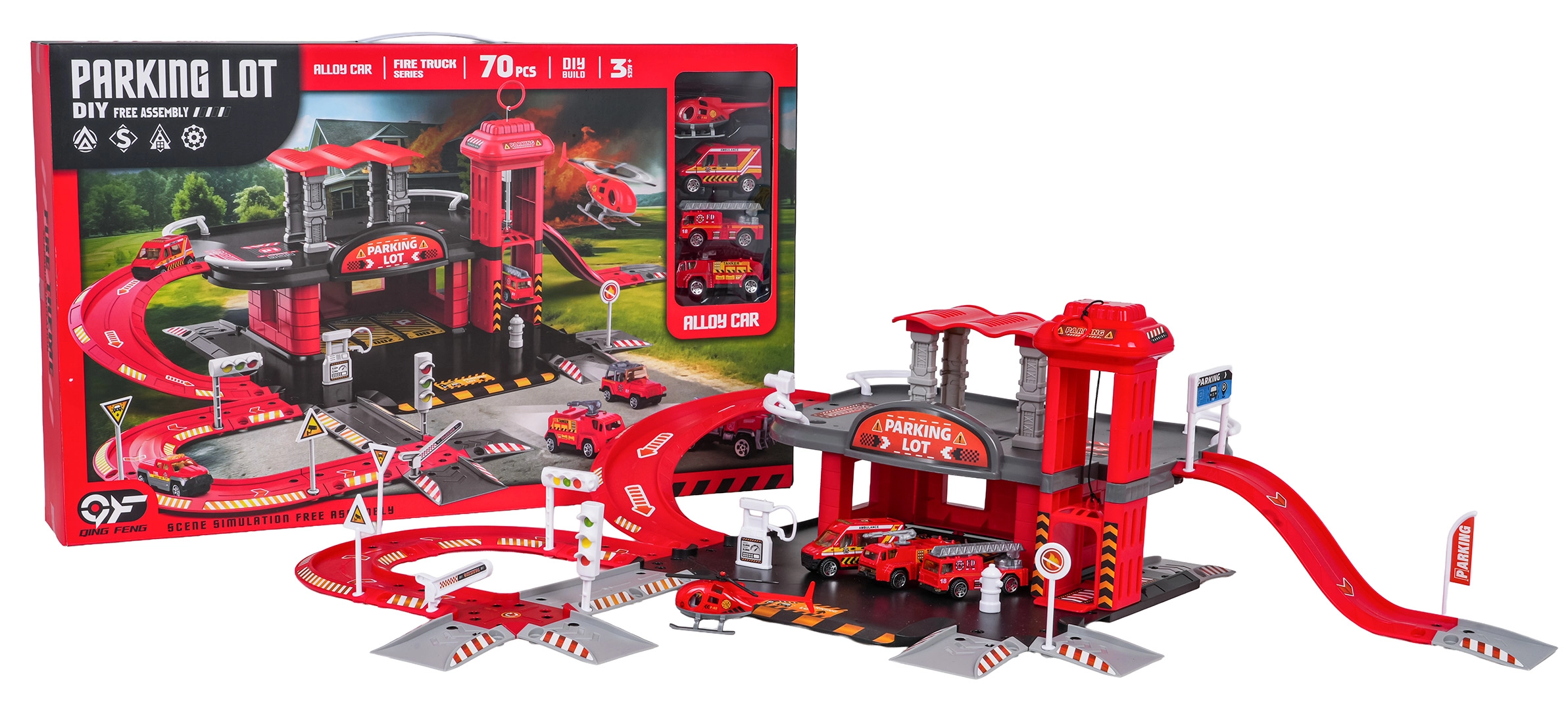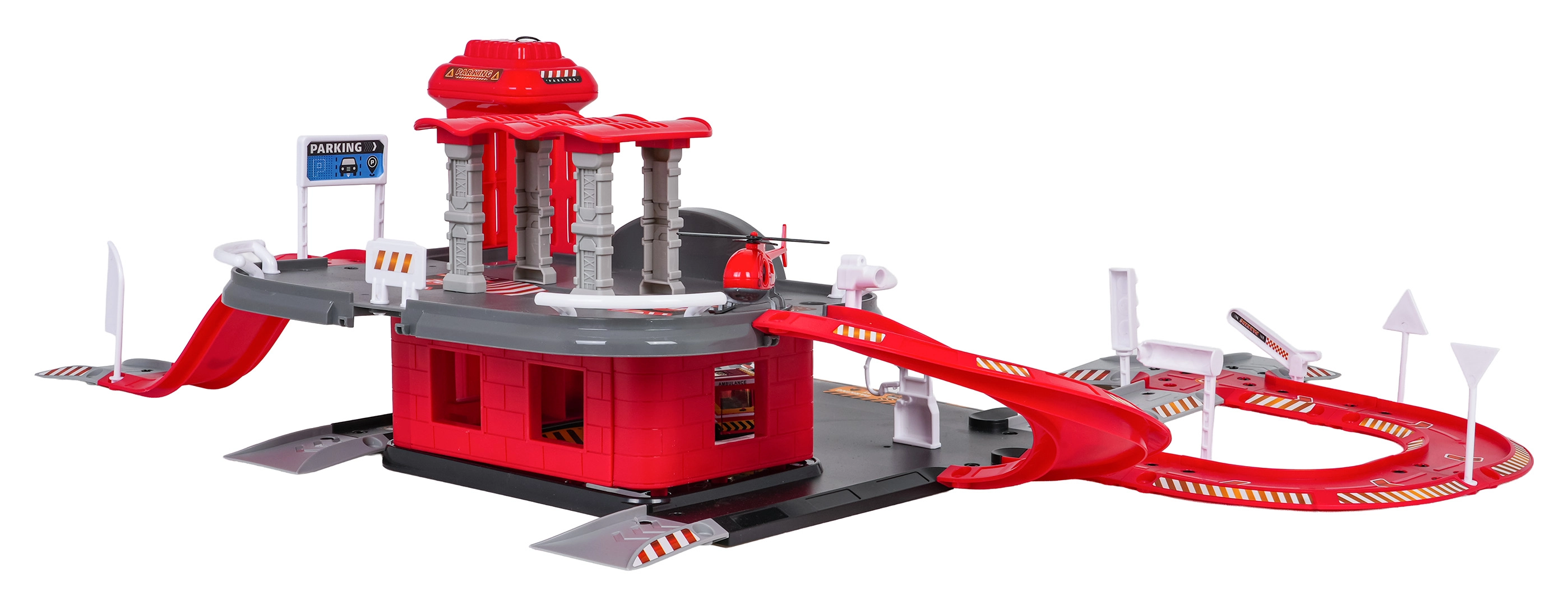 Tento detailně zpracovaný set hasičské stanice kombinuje zábavu a rozvoj dovedností. Děti mohou tankovat na benzínce, jezdit po silnici, vyvézt vůz manuálním výtahem do patra a parkovat v určených stáních. Z horního patra se vozidla vracejí výtahu nebo sviští dolů po závitové rampě.