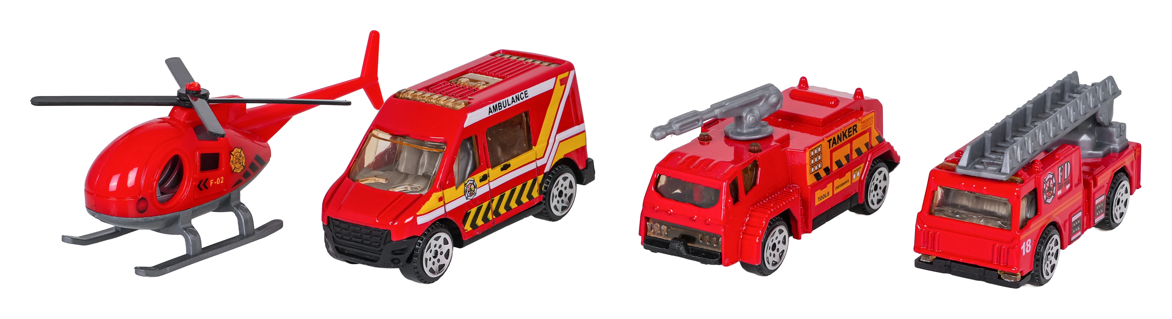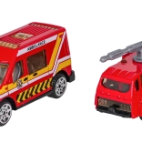 Tři odolná kovová autíčka s pohyblivými prvky a detailní helikoptéra rozšiřují herní možnosti a realističnost akce.