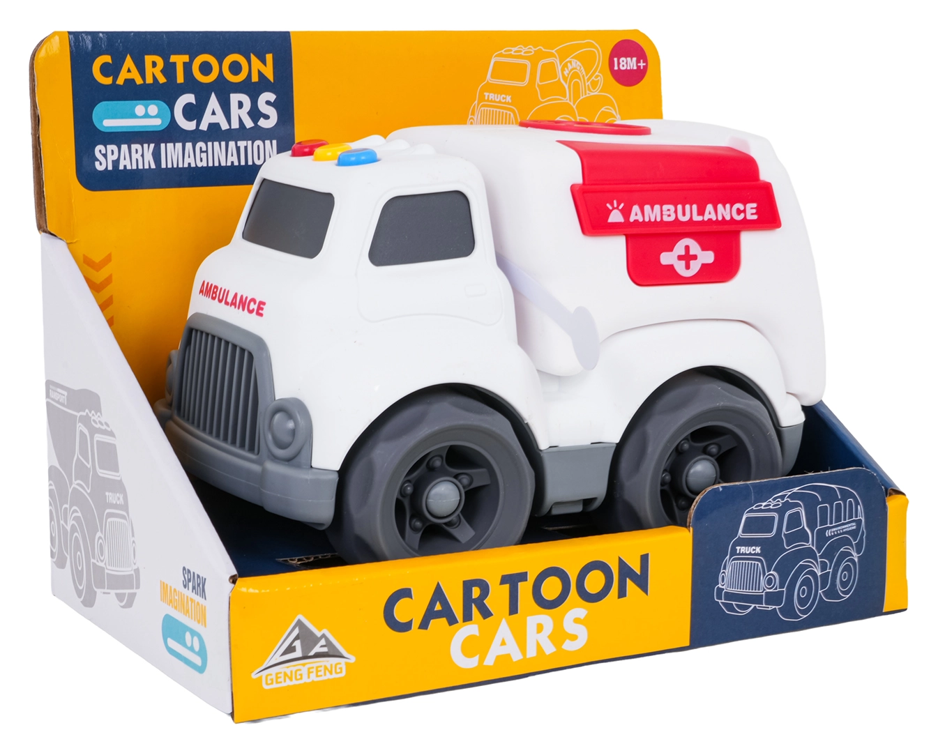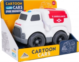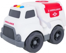 Roztomilé vozidlo sanitky pro děti od 18 měsíců přináší spoustu zábavy díky světelným a zvukovým efektům, otevíracím zadním dveřím a bezpečnému, oblejšímu provedení bez ostrých hran. Na střeše najdete barevná tlačítka, která spouští zvuky startu, jízdy, couvání i veselou melodii. Baterie jsou součástí balení, takže zábava může začít ihned.