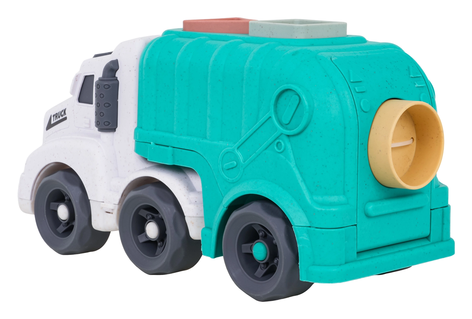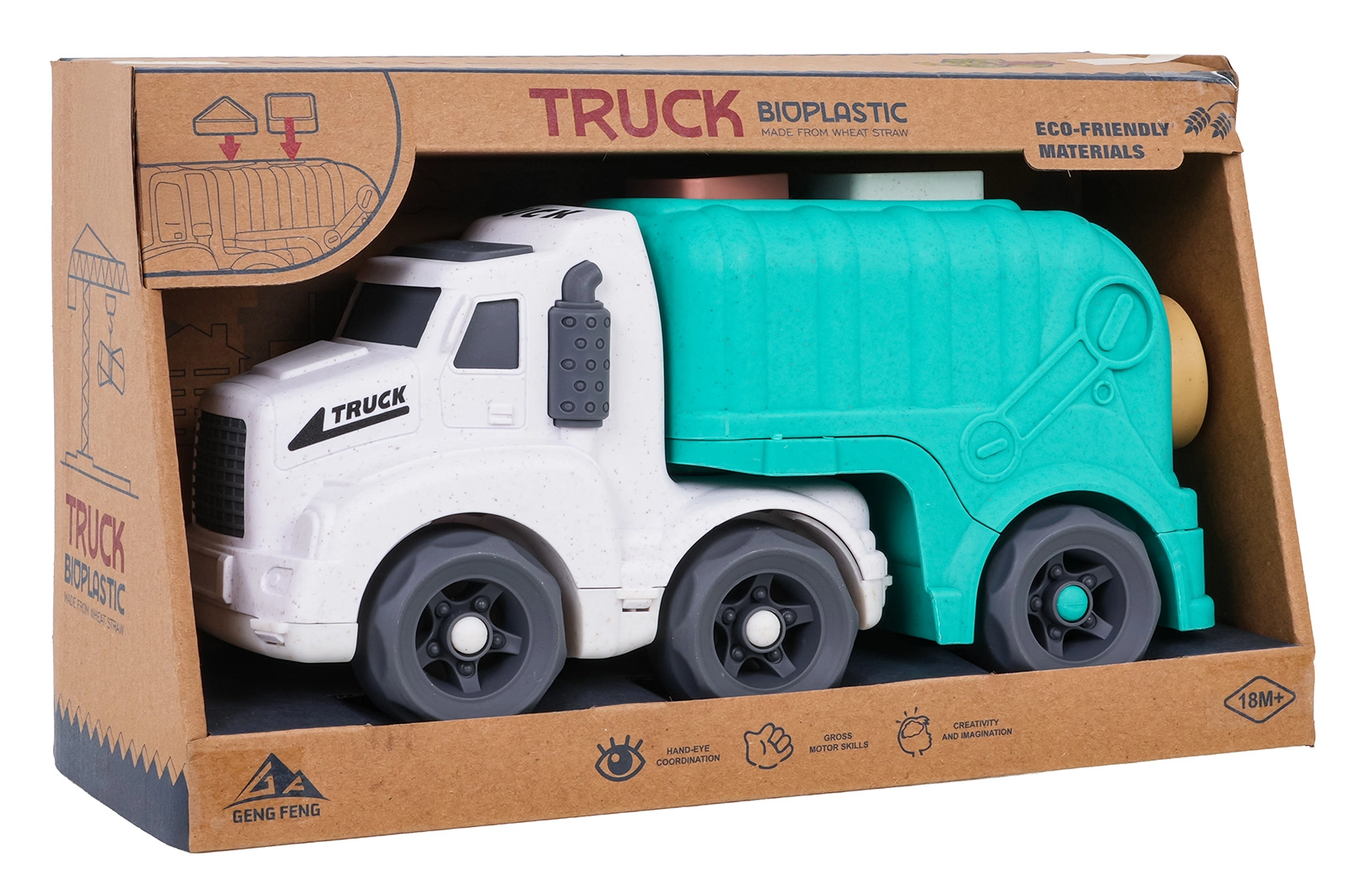 Hračka má bezpečné oblé hrany, je odolná a vhodná pro malé dětské ruce. Rozvíjí koordinaci oko–ruka, logické myšlení i představivost při hře na třídění odpadu. Díky robustnímu zpracování je skvělá na koberci, podlaze i venkovním hřišti.