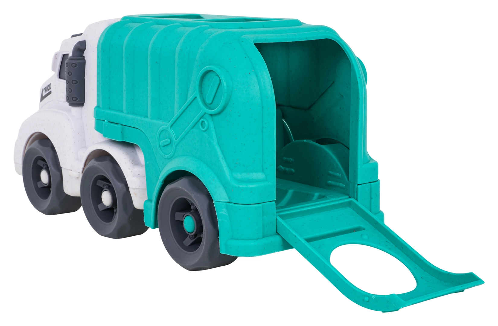 Zadní dvířka se snadno otevírají a slouží jako rampa pro vyjímání a nakládání kostek – plynulá hra bez zbytečného zadrhávání.