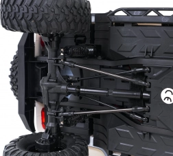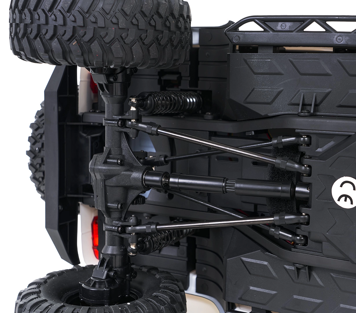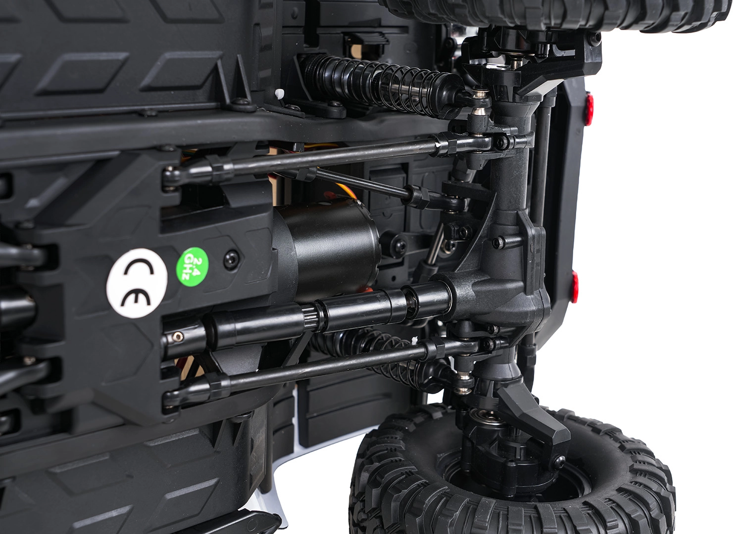 Nezávislé zavěšení kol, kovová táhla a přední i zadní diferenciál zajišťují stabilitu, trakci a plynulý průjezd překážkami.