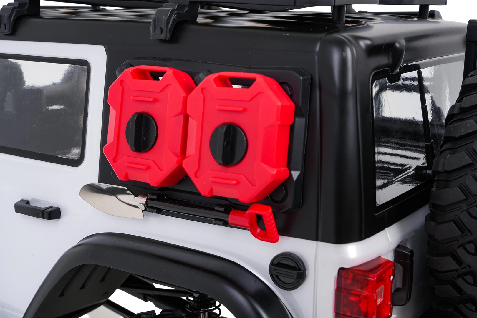 RC auto WILDERNESS je připravené k jízdě (RTR) hned po vybalení. Pevná lakovaná karoserie, plně funkční LED světla (potkávací, brzdová, zpátečka, směrovky) a bohaté měřítkové doplňky včetně plnohodnotného rezervního kola vytvářejí perfektní kombinaci stylu a výkonu. Ovládání probíhá na frekvenci 2,4 GHz s možností volby 2 rychlostních režimů a tempomatu (stálá rychlost).