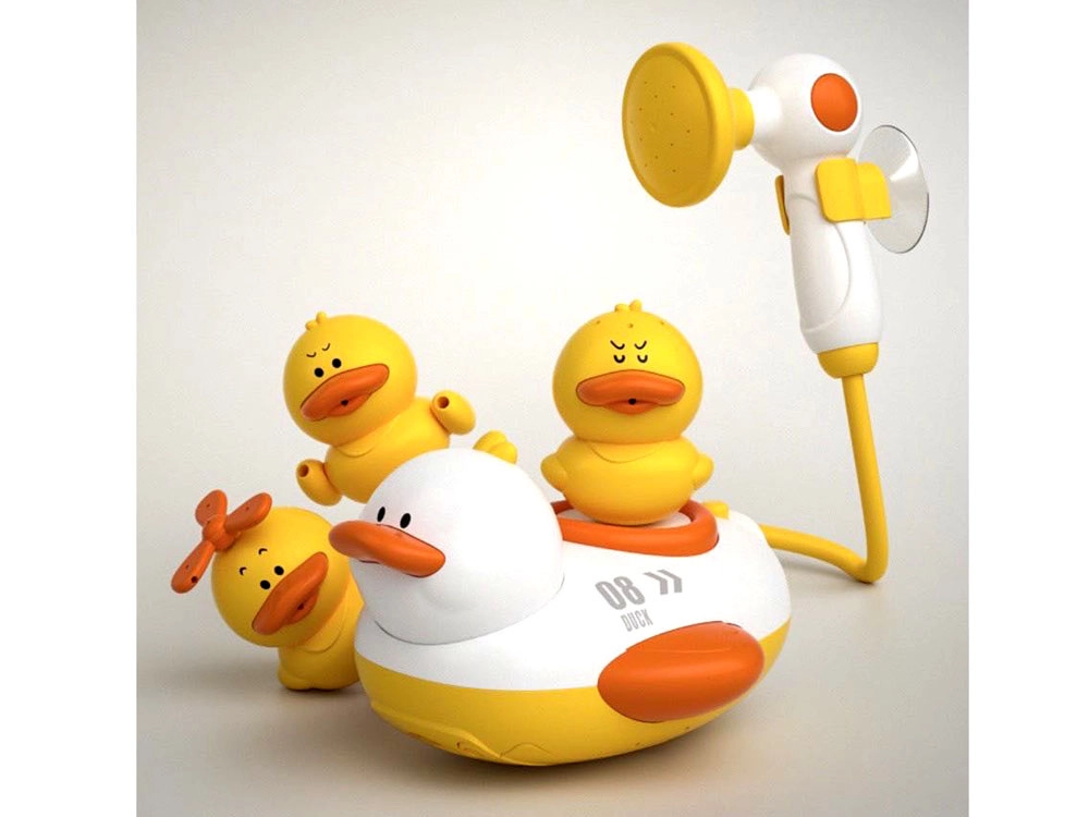 Plovoucí kachna funguje jako vodní pumpa – po položení na hladinu a stisku tlačítka začne čerpat vodu a společně s výměnnými doplňky vykouzlí fontánky, rozprašování i točivé efekty. Děti si mohou vybrat jednu ze tří malých kachniček s různými vodními atrakcemi nebo použít ruční spršku s nástavci pro jemné oplachování.