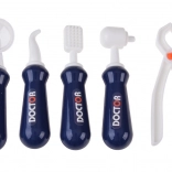 Otevírací model čelisti a samostatný „zub“ učí správné návyky péče o zuby. Zrcátko, kartáček a zubařské nástroje podporují hravou edukaci.
