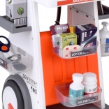 Pevná konstrukce na kolečkách, více polic a vaniček pro přehledné uložení nástrojů a „léčiv“. Děti si snadno vezmou vozík kamkoli a mají vše po ruce.