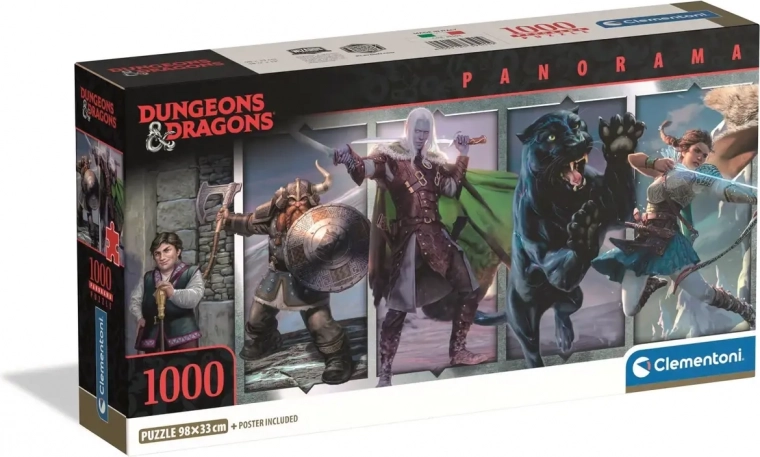 Užijte si hodinovou zábavu s panoramatickým puzzle CLEMENTONI inspirovaným světem DUNGEONS & DRAGONS. Kvalitní tisk, precizní výřezy a 1000 dílků vytváří detailní obraz o rozměru cca 98 × 33 cm – ideální pro milovníky fantasy a sběratele.