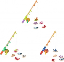 Zábavná dřevěná hračka pro malé rybáře v mini verzi klasického magnetického rybaření. Pomocí prutů s magnetem děti chytají barevné rybičky, což rozvíjí jemnou motoriku, koordinaci oko–ruka a trpělivost. Kompaktní rozměry jsou ideální na cesty a kvalitní dřevěné provedení se sytými barvami zaručuje bezpečnou a dlouhotrvající zábavu.